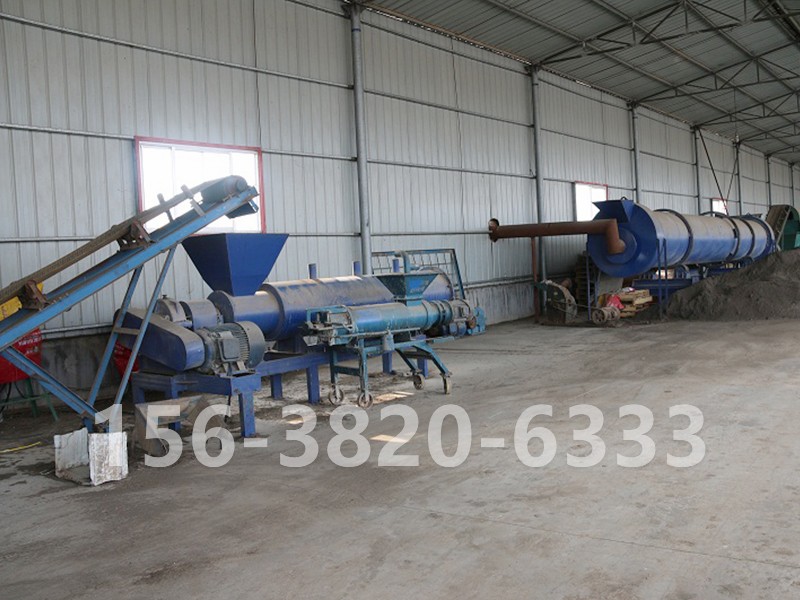 一般原料發(fā)酵之后,可直接深加工造粒。如果原料沒經(jīng)過處理,參照以上方法發(fā)酵,整套設備需要發(fā)酵翻拋機、半濕物料粉碎機、滾筒篩分機、臥式攪拌機、造粒機、烘干機、冷卻機、滾筒篩分機、包膜機、自動定量包裝機等設備。